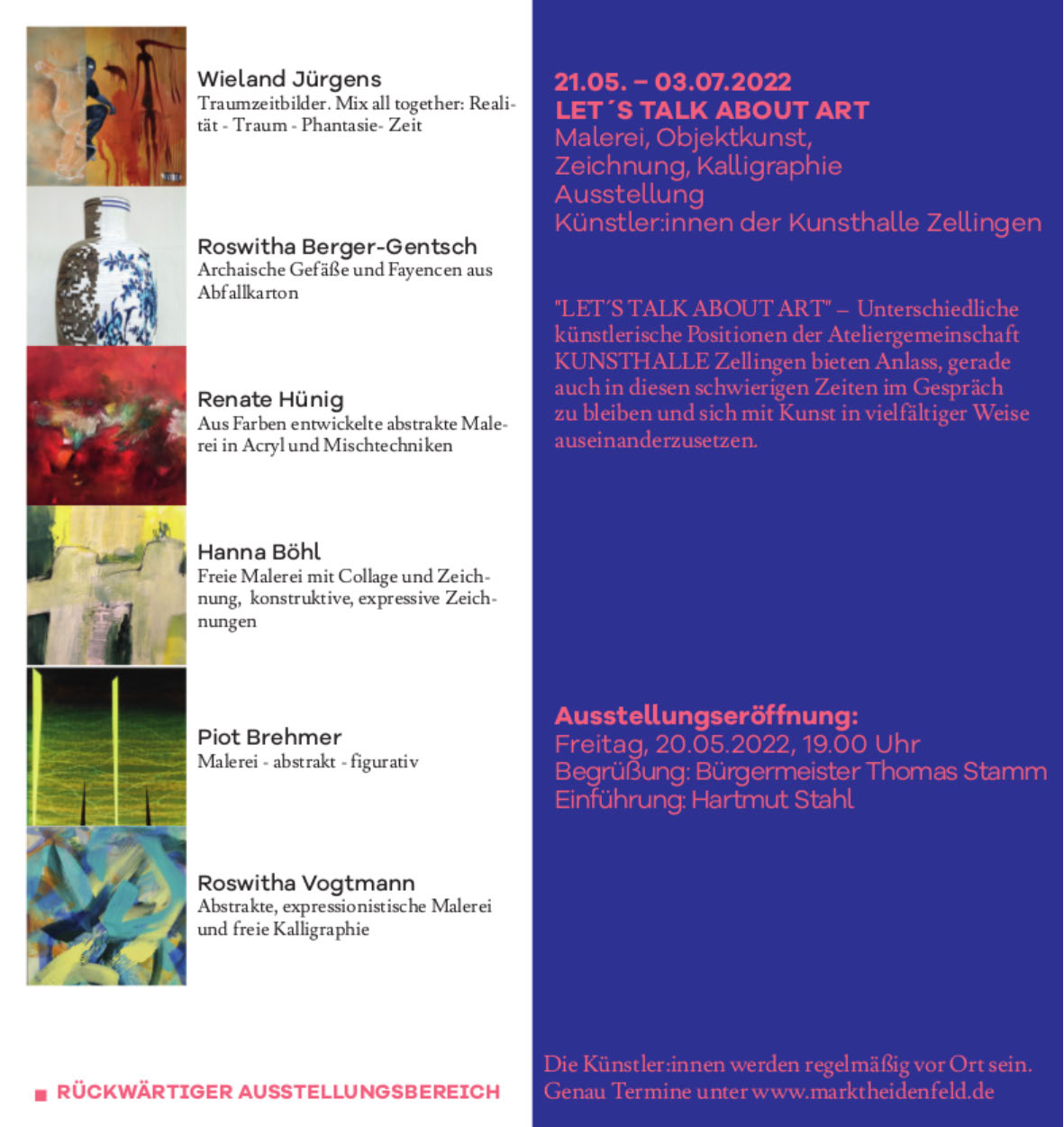 Tage des offenen Ateliers Sa u. So 16. u.17. Oktober 2021 13 – 18 Uhr Ateliergemeinschaft Kunsthalle Zellingen |