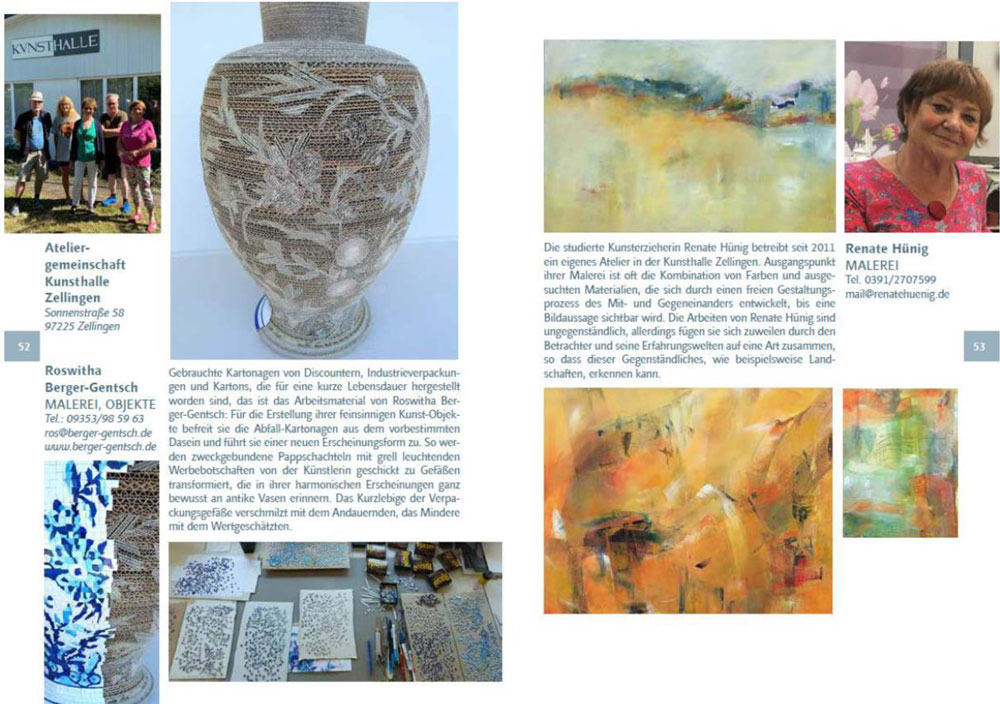 Tage des offenen Ateliers Sa 4. Juli und So 5. Juli jeweils von 14 – 19 Uhr Ateliergemeinschaft Kunsthalle Zellingen, Sonnenstr. 58, |