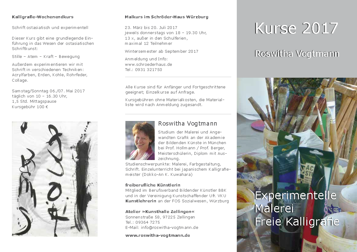 | November | Spitäle an der Alten Mainbrücke, Würzburg Kalligraphie und Malerei Einzelausstellung Vernissage Samstag 3.11. um 19 Uhr Dauer der Ausstellung 4.11. - 25.11.2012 geöffnet: Di - Do, Sa und So 11 - 18 Uhr Fr 11 - 20 Uhr Flyer-PDF |