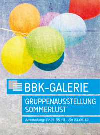 BBK-Sommerausstellung „Zwiesprache" Eröffnung am Fr 30. Juni um 19 Uhr BBK-Galerie im Kulturspeicher Würzburg Ausstellungsdauer: bis So 30. Juli 2017 Öffnungszeiten: Fr u. Sa 15 - 19 Uhr, So 11 - 18 Uhr |